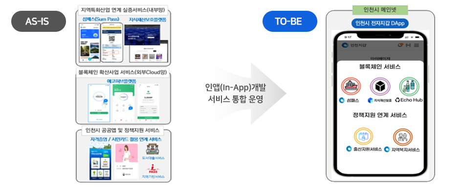 ◯ 인천 지역의 섬 관광객들의 본인확인(통신사, 간편인증 등), 행안부 연계(시민인증) 개발 ◯ 섬 관광 활성화를 위한 할인혜택 제공과 주요 사진 NFT 민팅 기능 구현 ◯ 관광객의 섬 지역 여행정보 이력 관리 기능 등 |